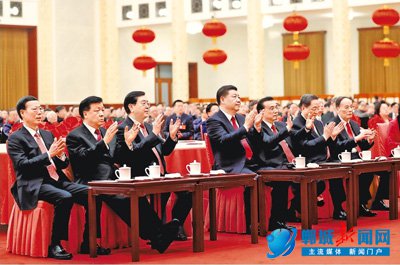 上午10时,在欢快的乐曲声中,习近平等党和国家领导人步入大厅,全场响起热烈掌声。