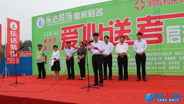 爱心送考,再次起航。2016年6月3日,郸城县第三届爱心送考公益活动启动仪式隆重举行。县委常委、宣传部长王伟,县人大副主任范鹏翔,县政府副县长刘淑杰,县政协副主席崔家龙,县教体局局长刘现营,县规划办主任徐其忠,团县委书记罗骁以及县直机关工委、交警大队等有关同志和二百余名爱心送考青年志愿者参加了仪式。启动仪式由县政府副县长刘淑杰主持。