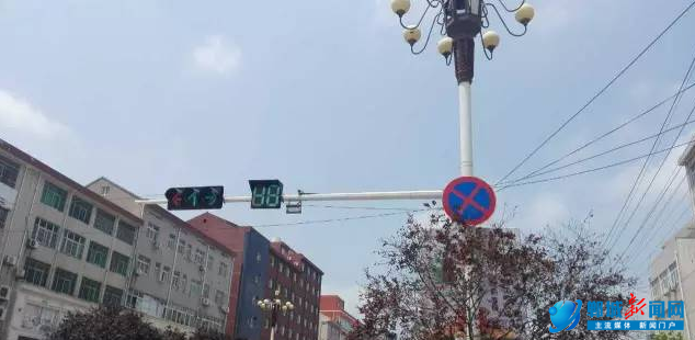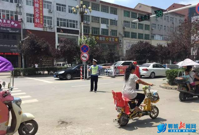 财源小学十字路口,交警在指挥交通。