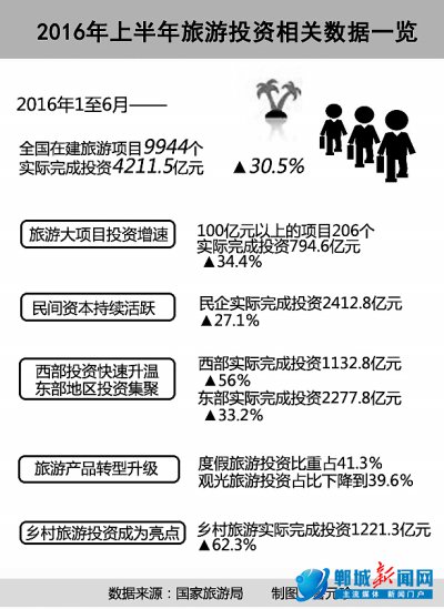 今年以来,各地纷纷开启全域旅游的实践,尤其在乡村生态、民俗文化等方面颇受关注。数据显示,今年上半年,乡村旅游实际完成投资1221.3亿元,较去年同期增长62.3%。同时,城市旅游服务设施的建设力度也在加大。