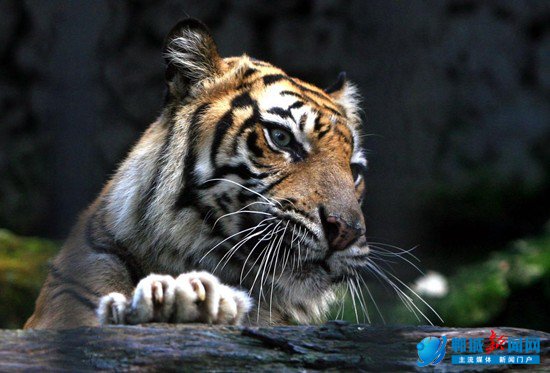 印度尼西亚泗水动物园里极度濒危的苏门答腊虎。